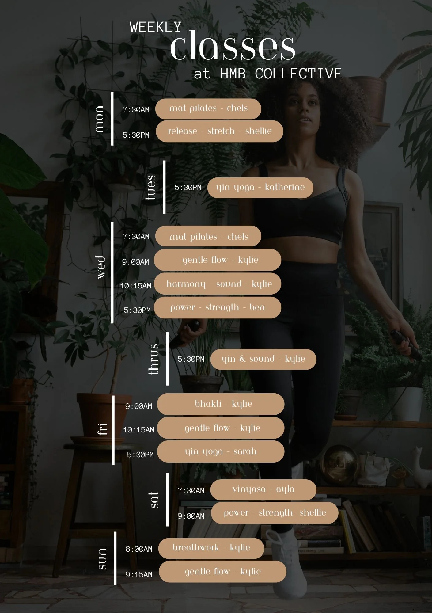 Get ready to move, sweat, and connect with yourself at HMB Collective! Our movement classes are designed to boost your health, fitness, and flexibility while keeping things fun and empowering. Sculpt and tone with MAT Pilates & POWER Strength Circuit, or find balance and relaxation in our soothing Yoga, Sound, Stretch & Meditation. Whether you’re looking to build muscle, increase your cardio vascular fitness, improve mobility, or simply reconnect with your body, we have the perfect class for you. Take the step today and feel the difference—your journey to a stronger, more balanced, healthier you starts here!